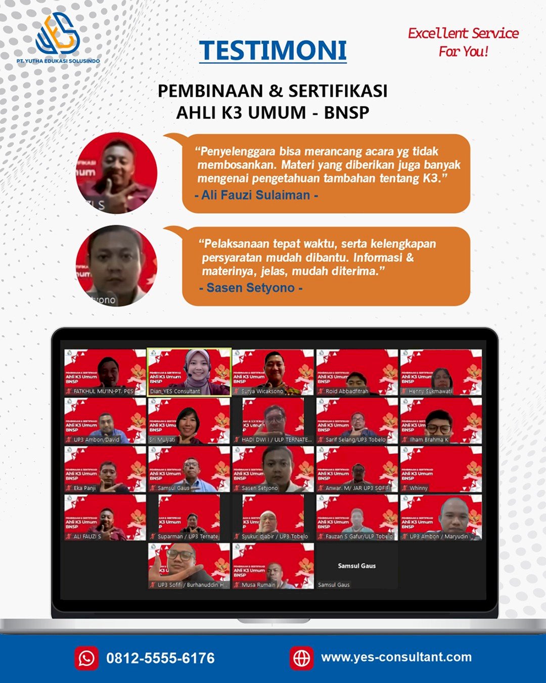 PT. Yutha Edukasi Solusindo (YES Consultant) merupakan vendor jasa pelatihan dan sertifikasi yang berlokasi di Jl. Babaran, No.731, Kel. Tahunan, Kec. Umbulharjo, Kota Yogyakarta, DIY, 55167.